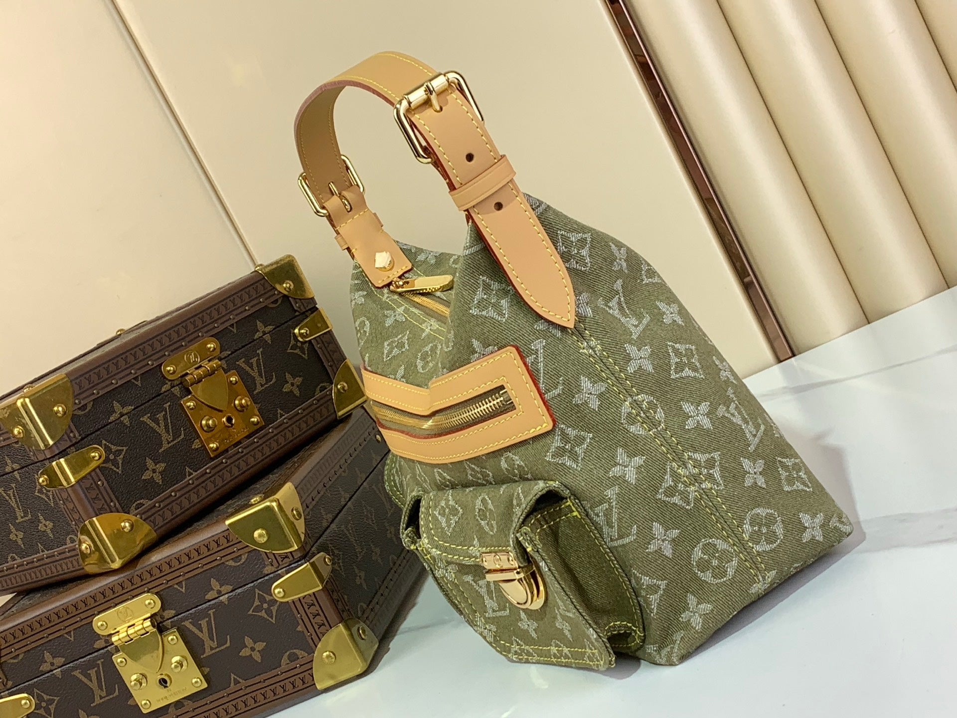Vintage Denim Messenger Bag Green